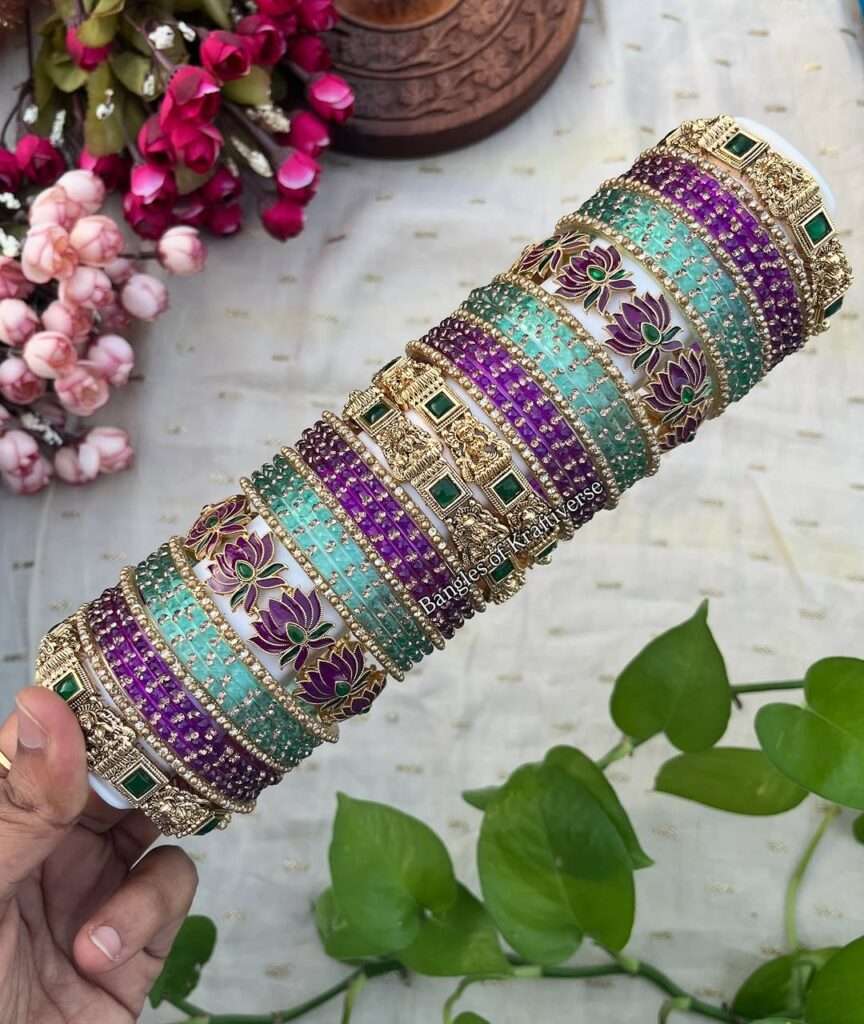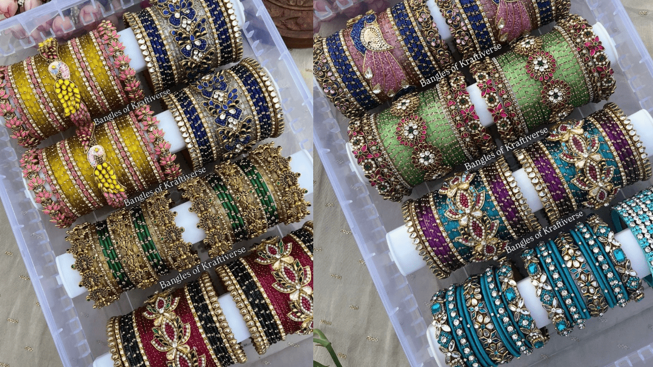 These bangles look premium without costing much. You can mix and match multiple designs to create rich, festive sets at budget-friendly prices.